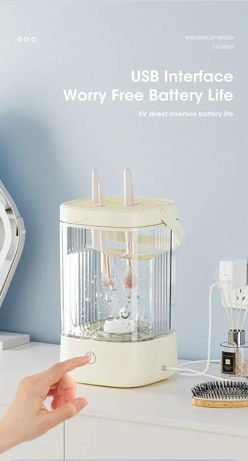 Mantenha seus pincéis de maquiagem sempre limpos, higienizados e prontos para o uso com o Limpador Elétrico 3 em 1 Portátil!